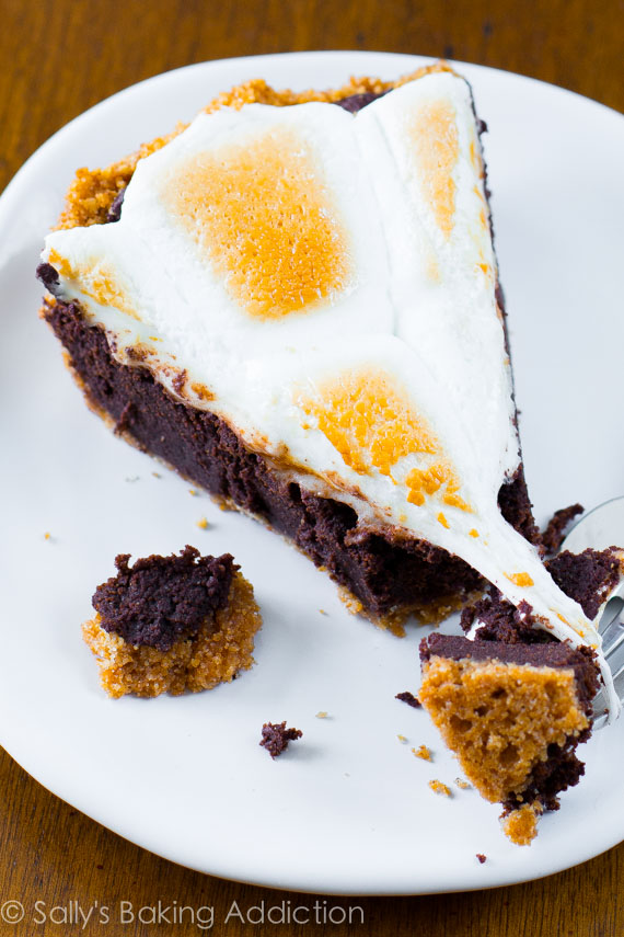 Bake for 28 minutes. Remove from the oven and top with marshmallows. Return to the oven and continue to bake for an additional 3 minutes to melt the marshmallows. If the marshmallows aren’t toasted, turn on your broiler for 1 minute. Remove from the oven and allow to cool to room temperature before slicing. Run a very sharp knife under warm water when slicing; it helps slice neat pieces.