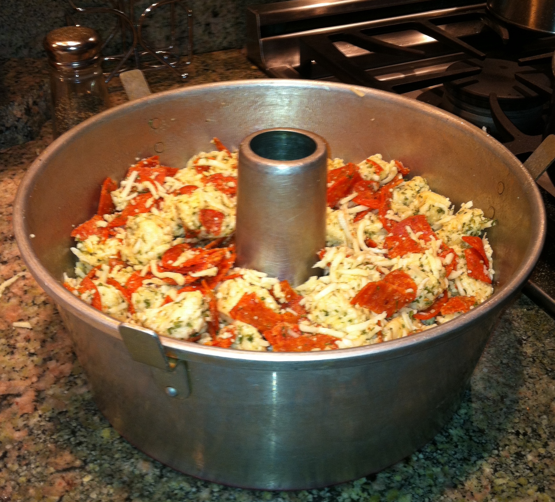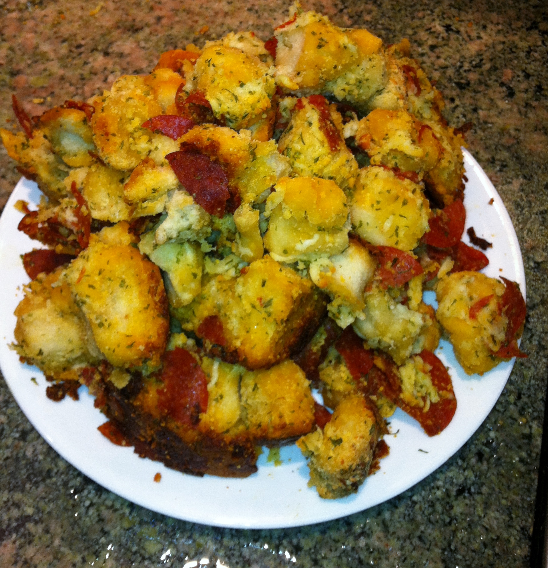 Okay folks…I promised the results of the two recipes previously posted. Here are the specs on the pizza bread. I forgot the damn marsh-mellows so couldn’t make the S’mores Brownie Pie, but I promise it will follow soon!