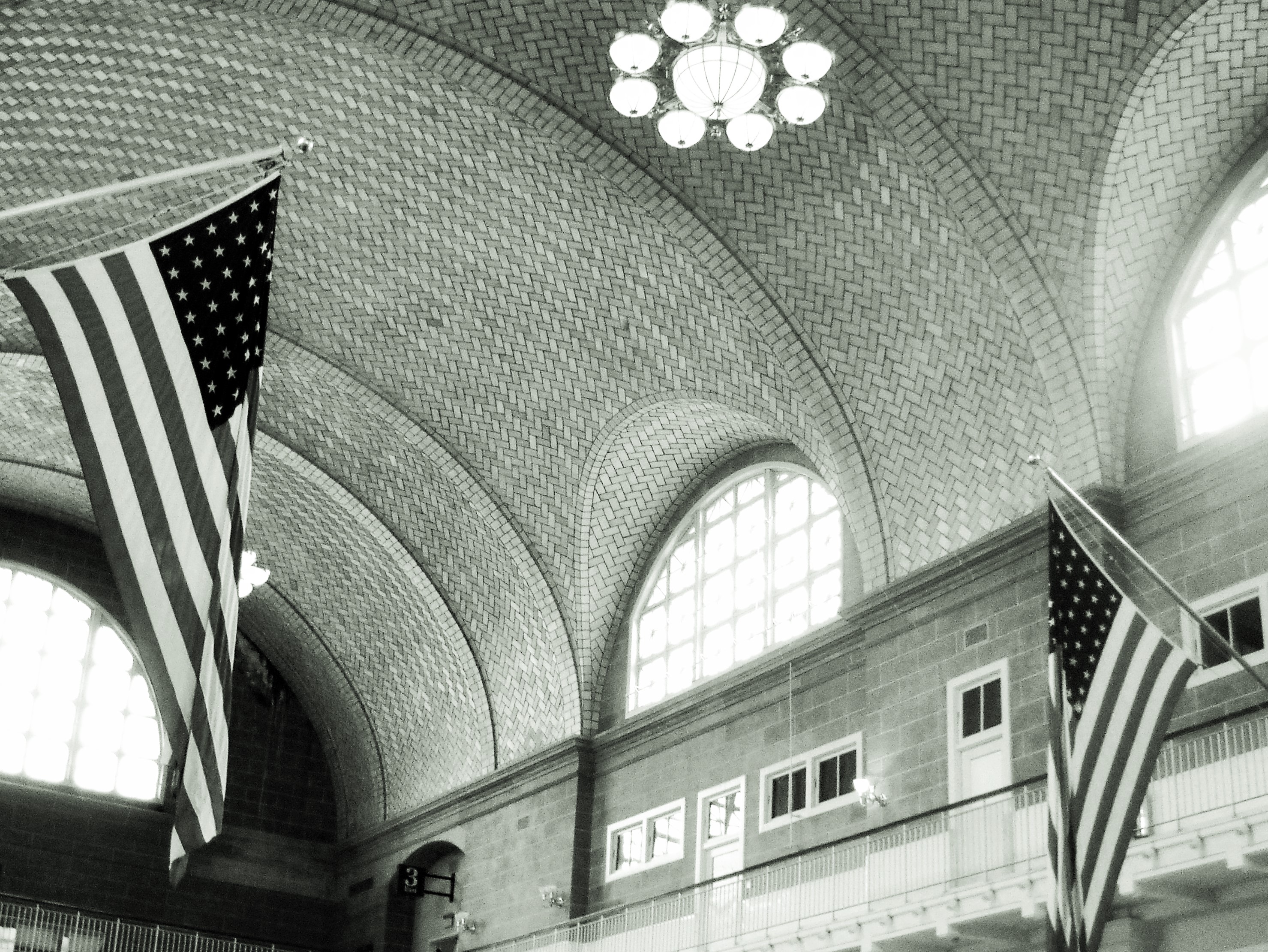 Inside building on Ellis Island. This is where the immigrants congregated after leaving their ships.