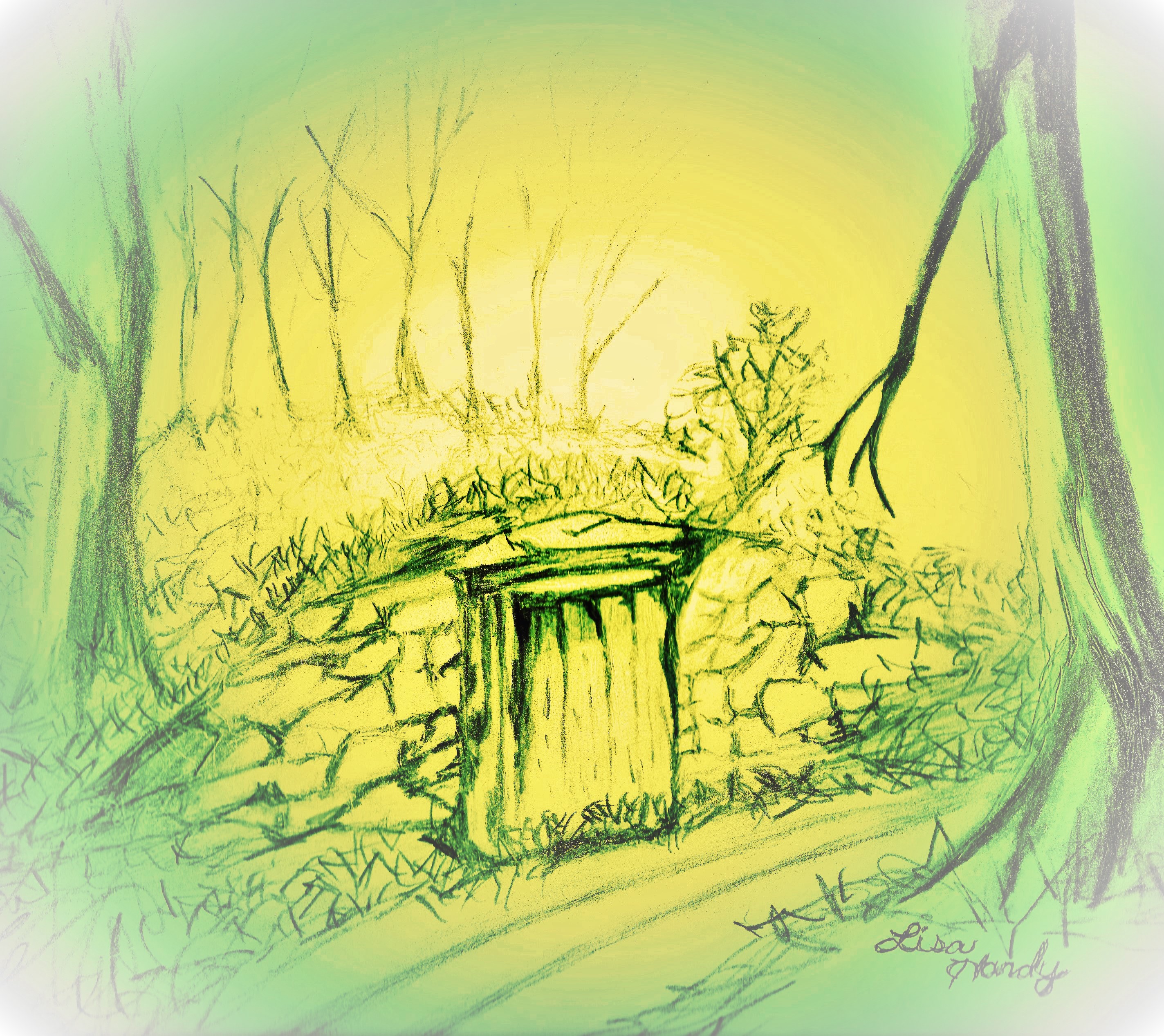 He opened the cabin door to an autumn forest. The aged root cellar was visible from the porch. He stood for a moment, surveying the crumbling stone and then took a step into the fading sunlight.